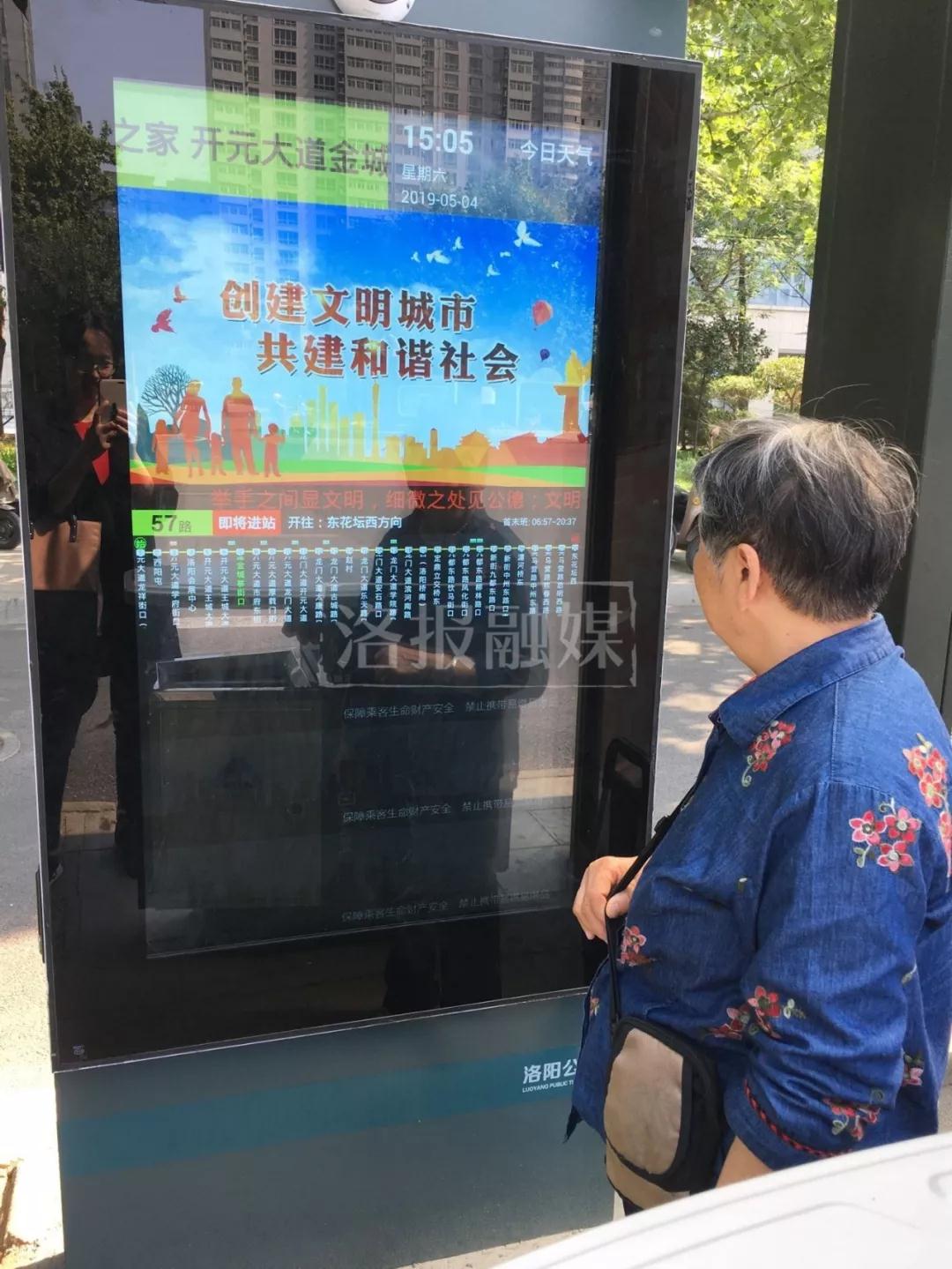 4日,记者从市公交集团获悉,5月1日起,我市智能公交调度系统进入测试阶段,测试线路为57路、81路,并在其途经的王城广场东、龙门石窟及市民之家三个站点安装了电子公交站牌。